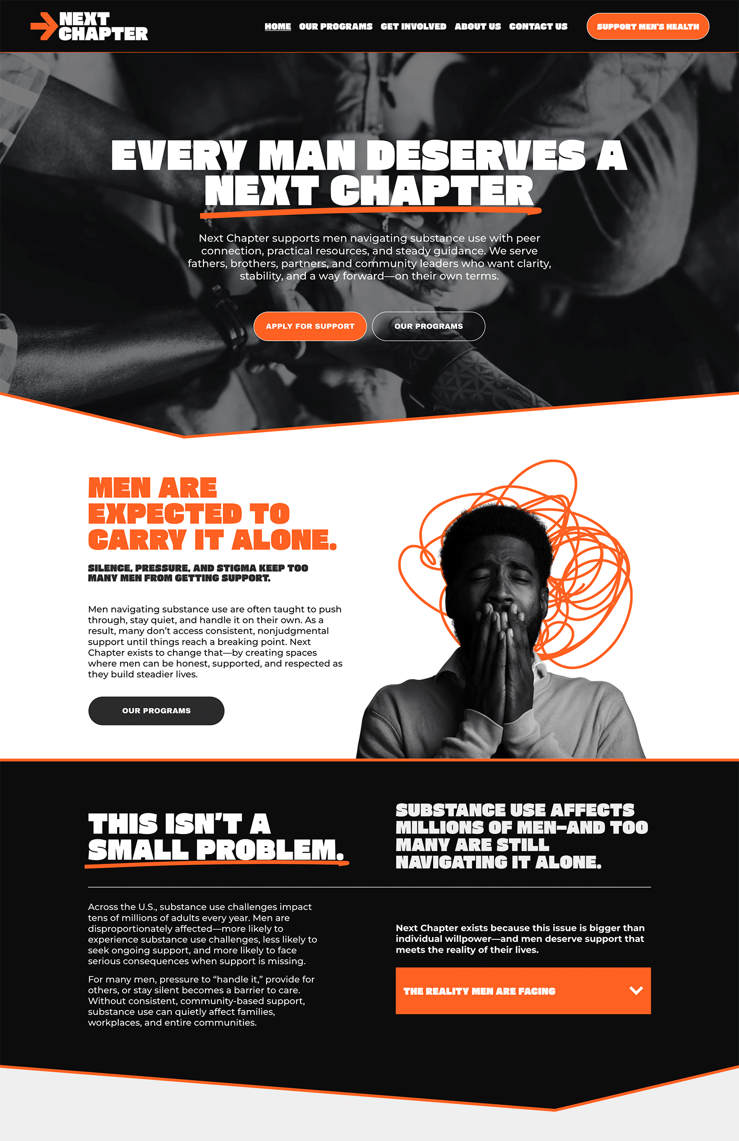 This bold template helps men-focused nonprofits clearly communicate their mission, programs, and impact—creating trust, engagement, and community support from the first visit.
